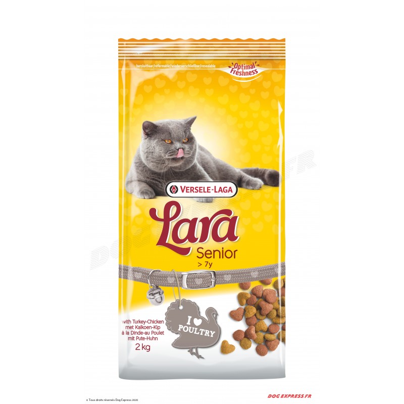 • Lara Senior est un aliment complet pour chats âgés de 7 ans et plus.