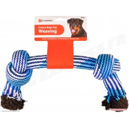 Jouet chien Coton Joe Corde + Balle Nouée + 2 Noeuds Bleu/Blanc Prix conseillé : 11.00 € Prix A partir de 9,80 €