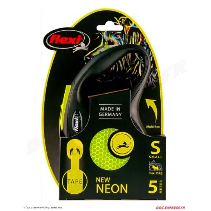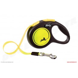 FLEXI NEW NÉON SANGLE NOIR/NÉON Enrouleur Flexi pour CHIEN.
