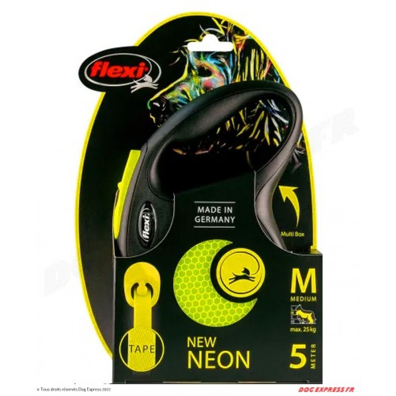 La laisse New Néon Flexi, permet à votre chien de se promener librement tout en restant attaché. La laisse dispose d'un système de verrouillage qui va permettre de bloquer la laisse à la longueur souhaitée.